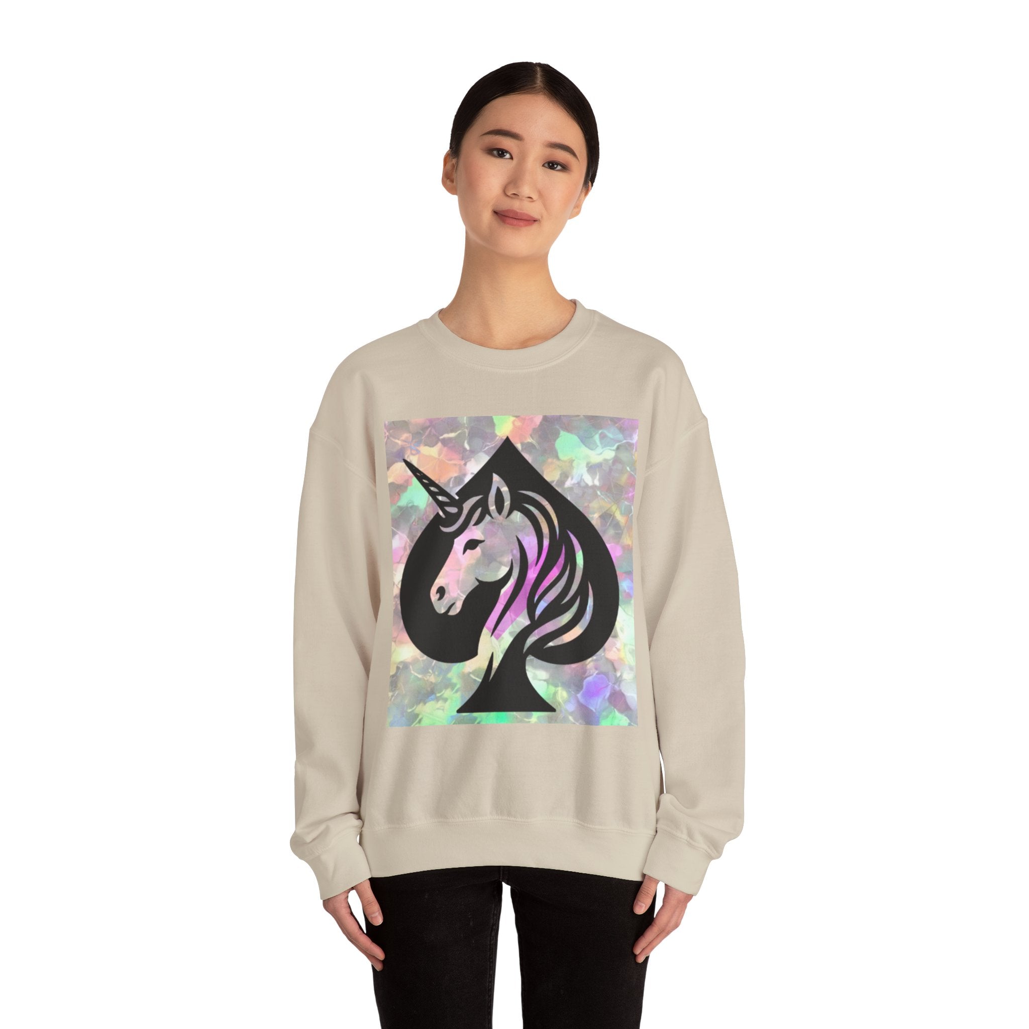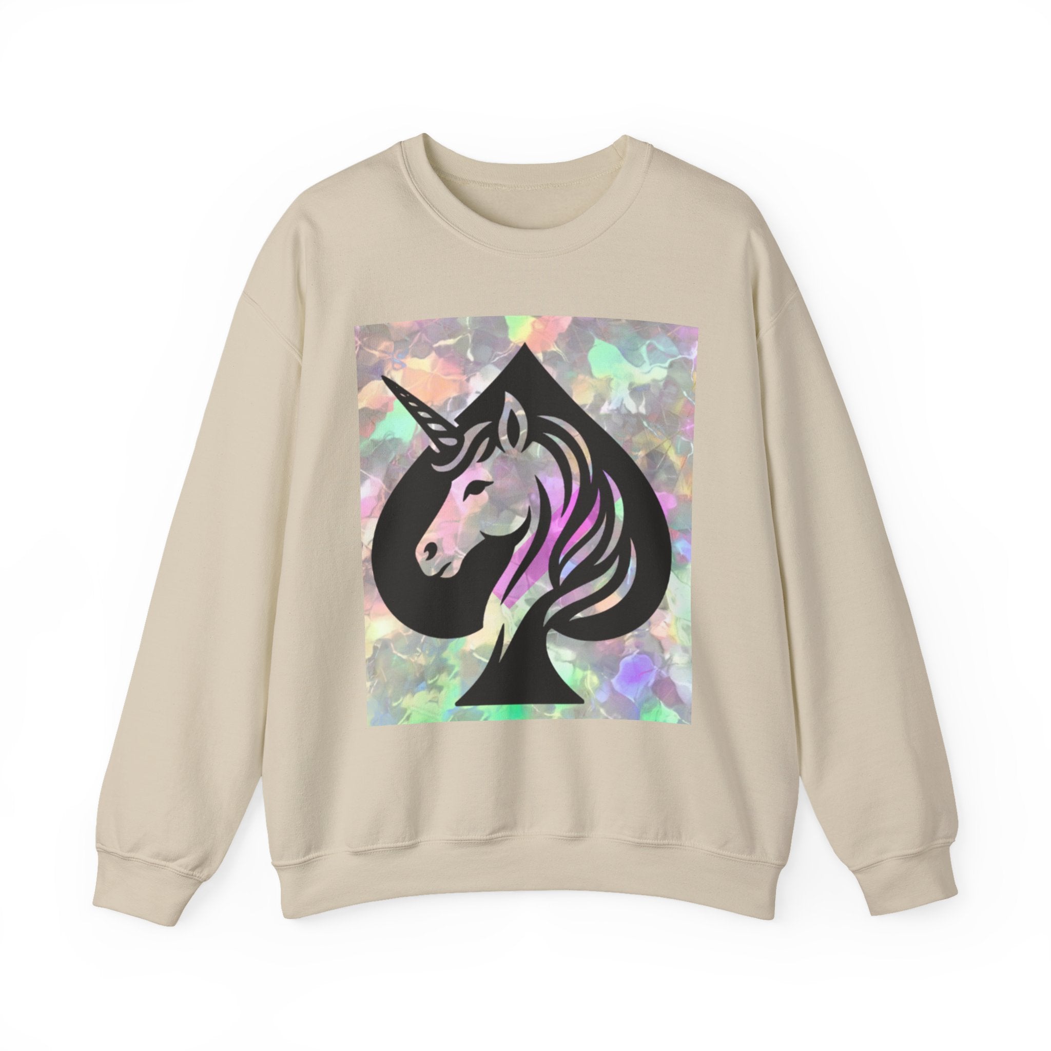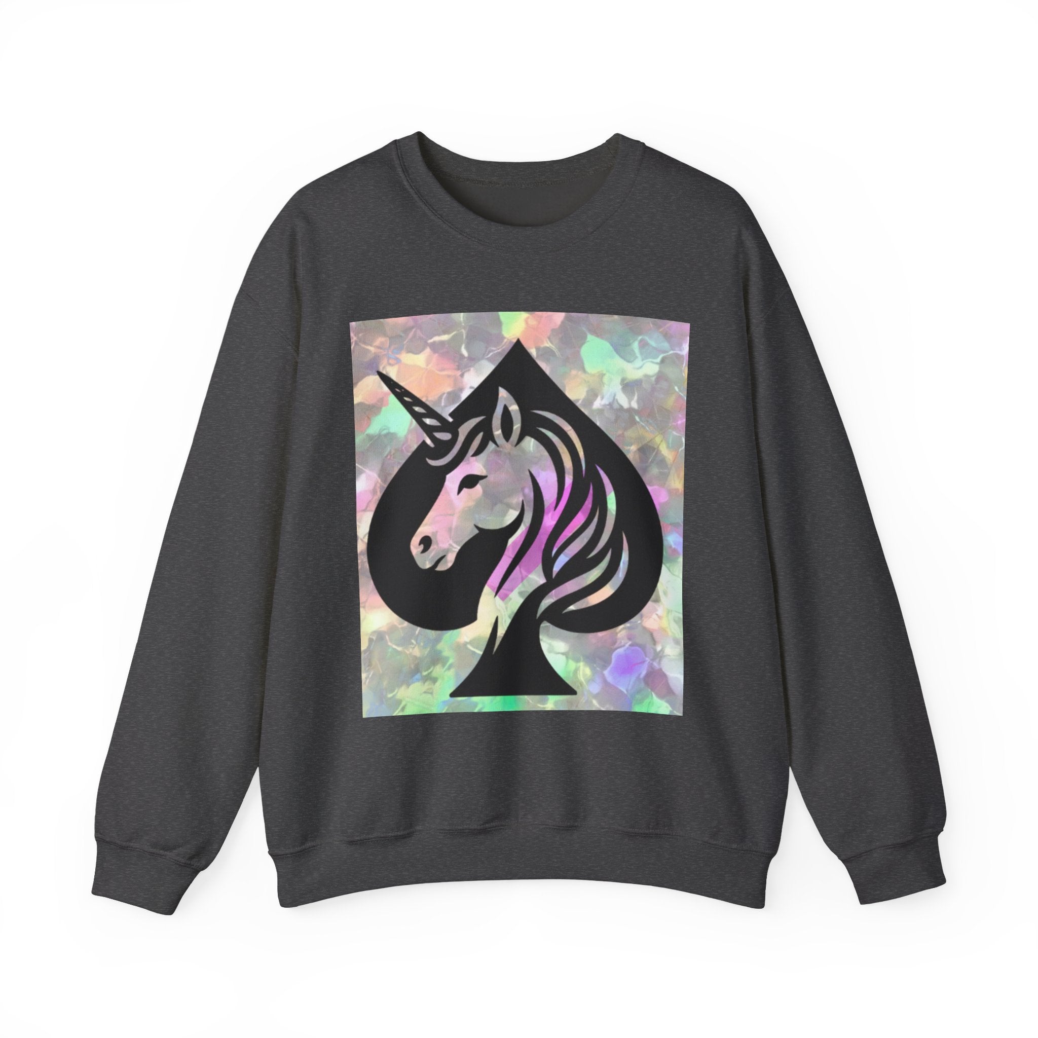 Unicorn Spade Crewneck Sweatshirt — Iridescent Magic Horse Graphic