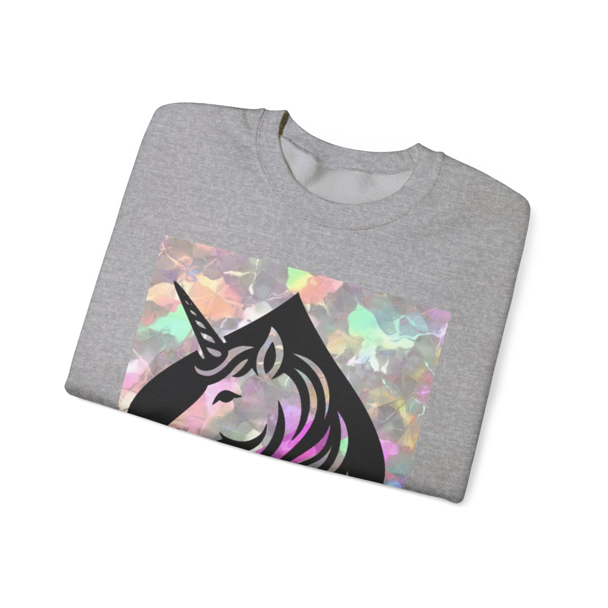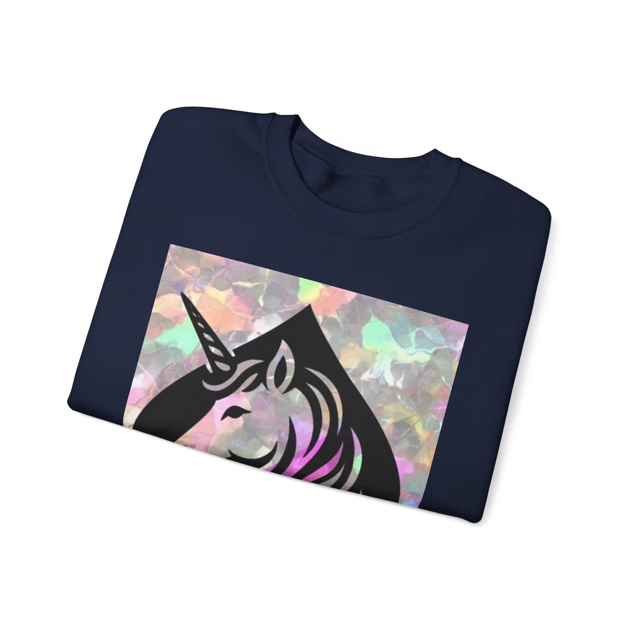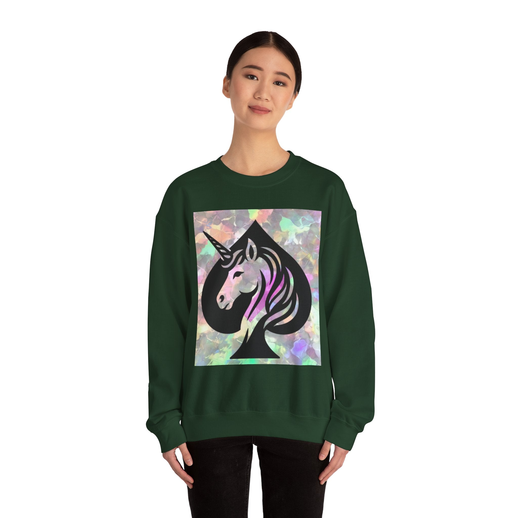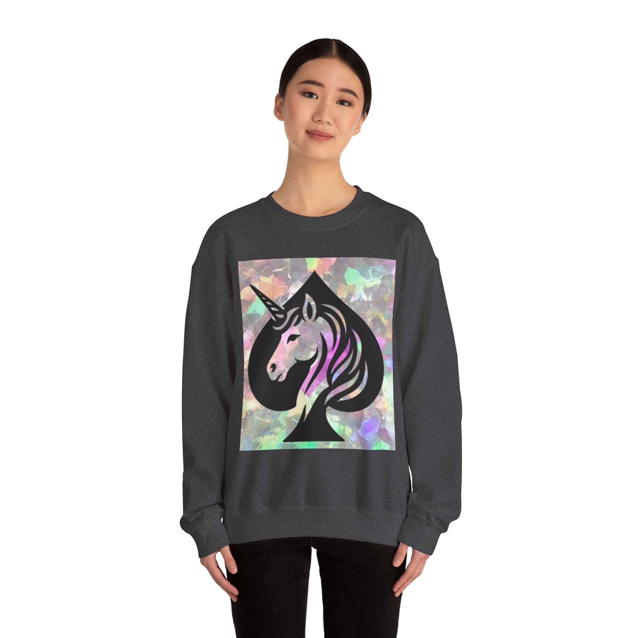 Unicorn Spade Crewneck Sweatshirt — Iridescent Magic Horse Graphic